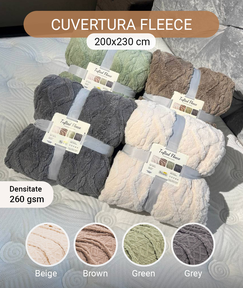 Bucurați-vă de căldură și confort cu acest pled elegant! Textura sa unică cu model geometric adaugă un accent modern și rafinat în interiorul casei. Fleece de înaltă calitate asigură finețe, durabilitate și ușurință în întreținere.